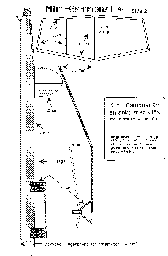 All the measurements given on the plans are for the Mini-Gammon (33 cm span).