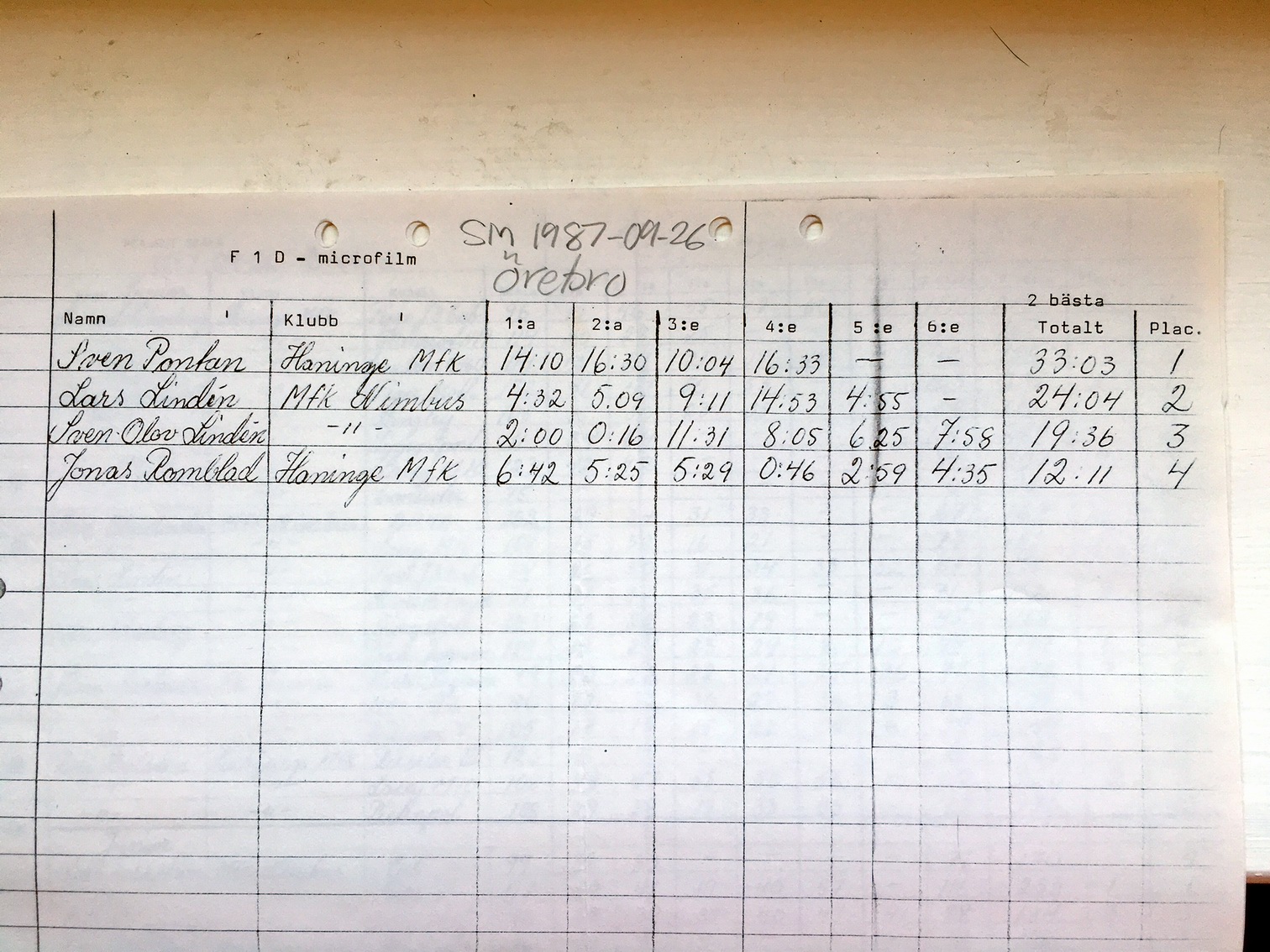 The reult lists can be seen below, click on the images to view them in larger size. The beautiful hand writing is by Vailet Lindén.