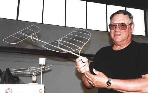 Romblads winning model in flight. Note how the end plate covering bows inward