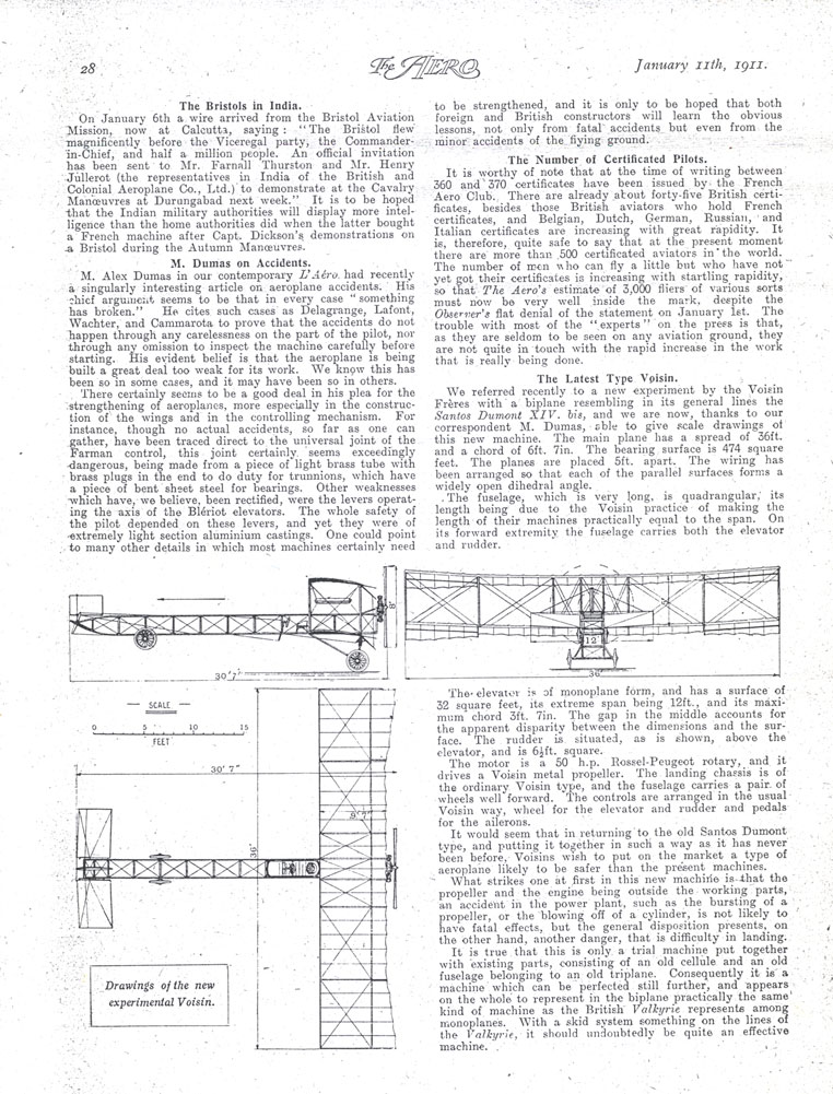 Voisins. In The Areo, July 1911, is found a 3-view of a two-seat